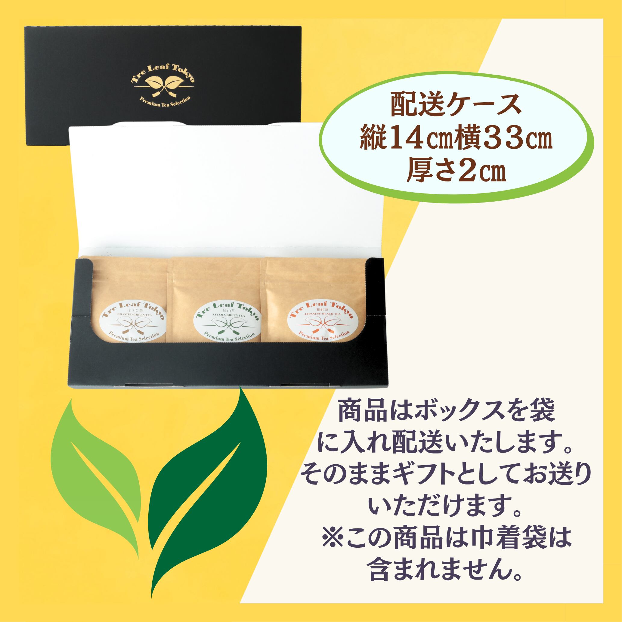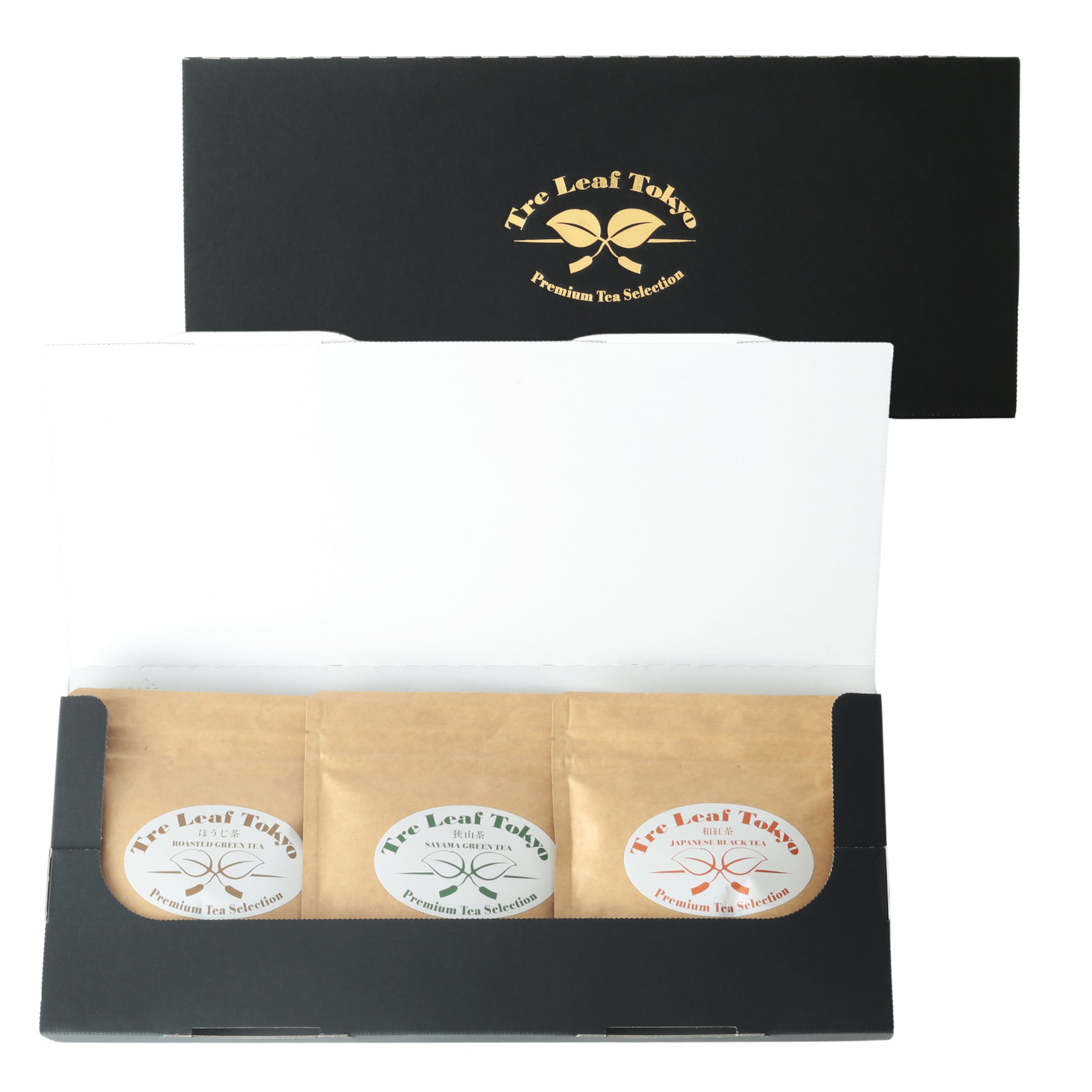Tre Leaf Tokyo 東京狭山茶ギフトセット 緑茶 和紅茶 ほうじ茶 ソイロンティーバック各5包入(巾着なし) 黒配送ケース
